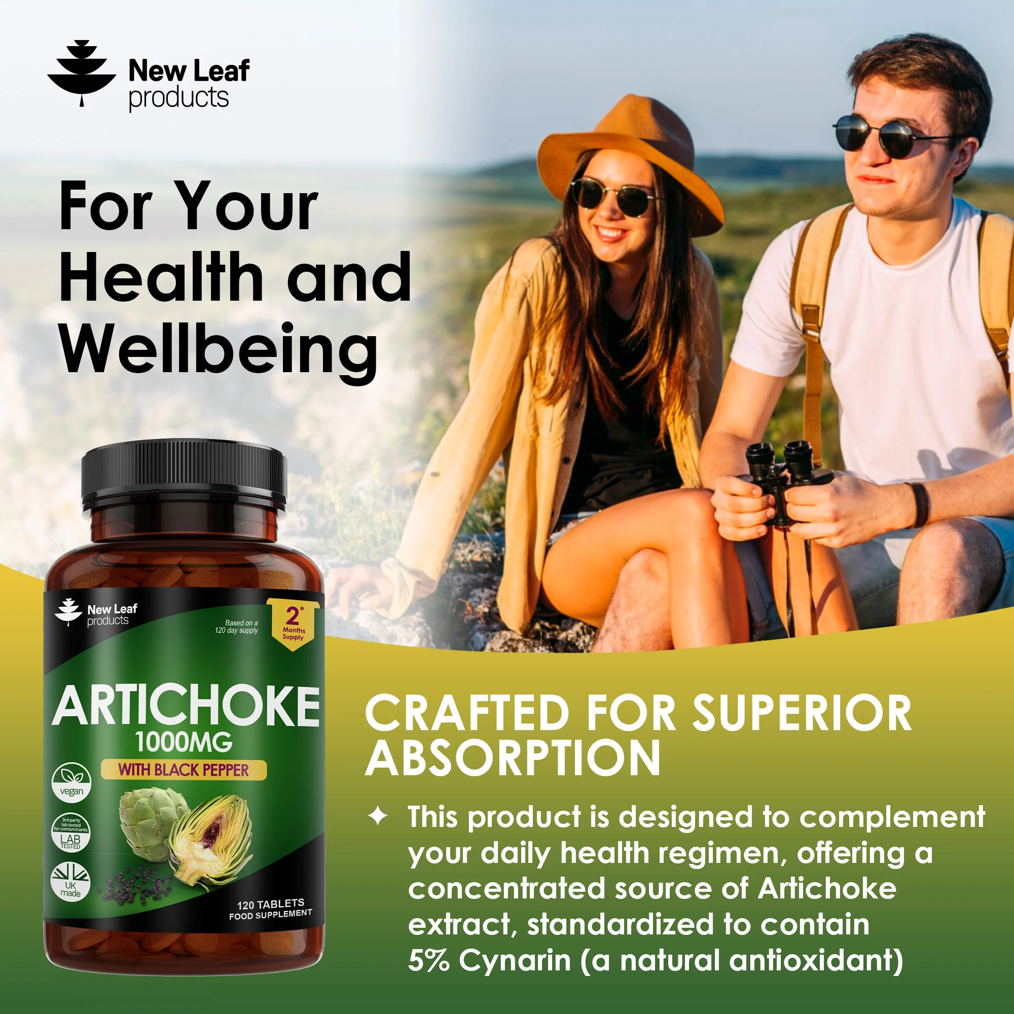Our Artichoke Tablets, enriched with Black Pepper for enhanced absorption, have been carefully formulated to include a 2 month supply of 120 tablets, with each serving delivering a potent 1000mg of high-quality Artichoke extract. This product is designed to complement your daily health regimen, offering a concentrated source of Artichoke extract, standardized to contain 5% Cynarin (a natural antioxidant), ensuring consistency and potency in every dose.