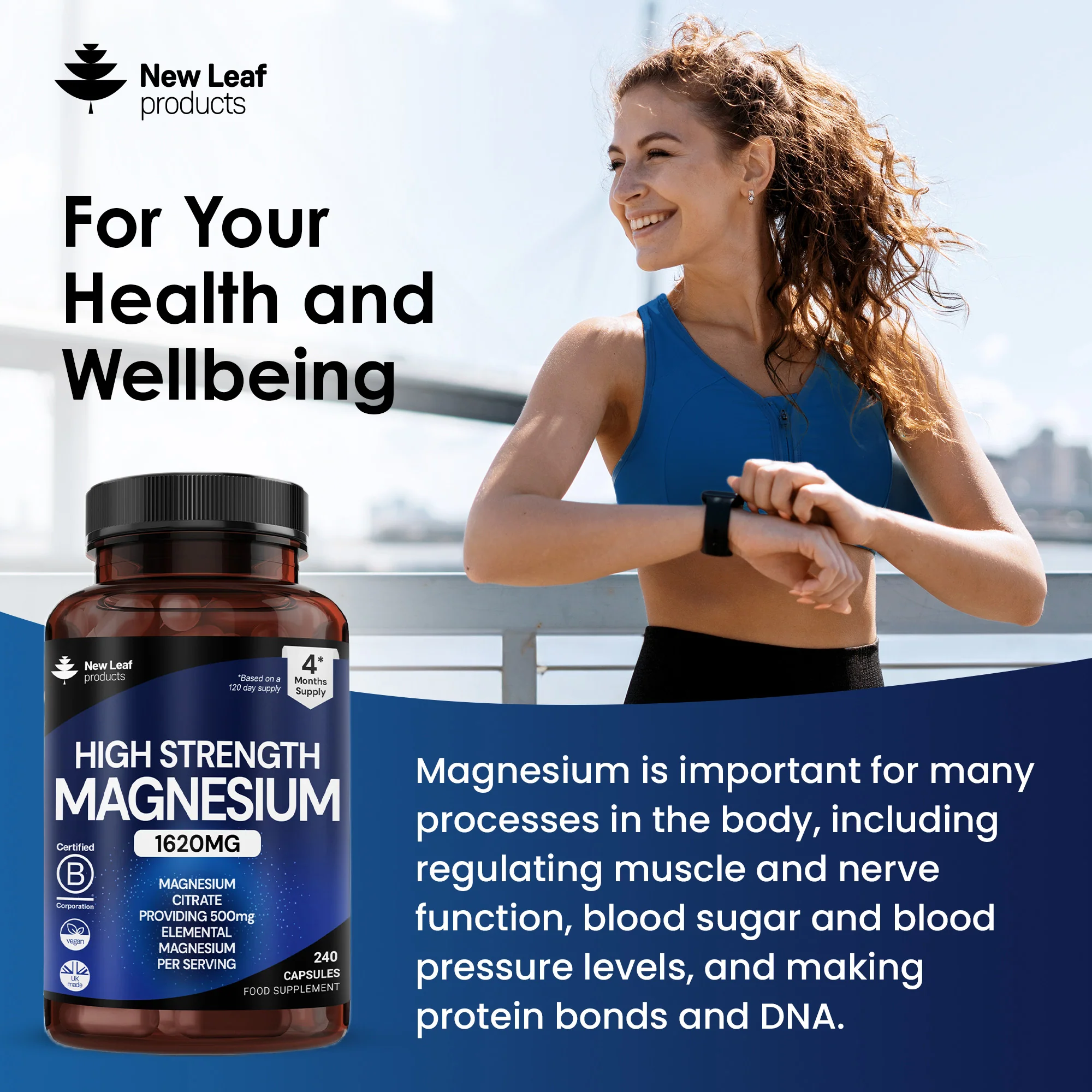 Magnesium Supplements 1620mg -240 Vegan Capsules High Strength Magnesium Citrate