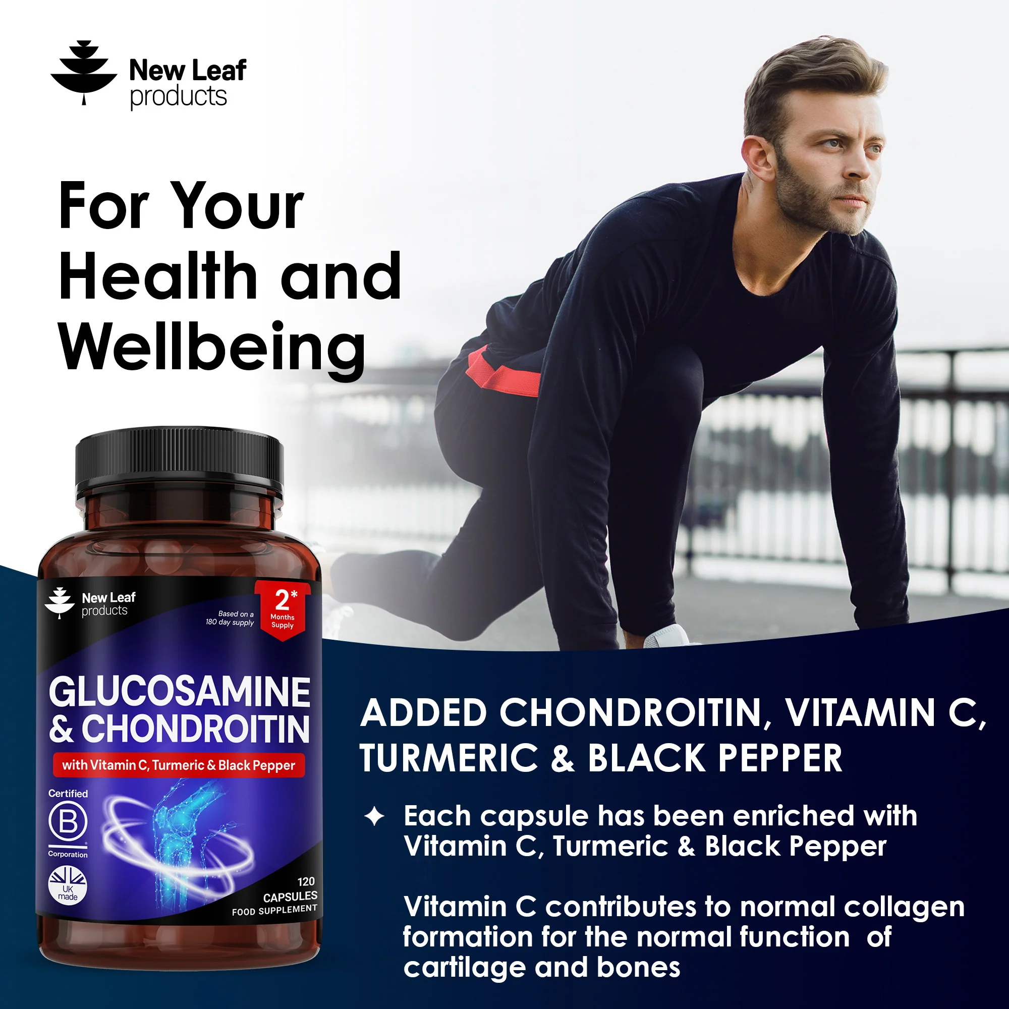 Glucosamine Sulphate & Chondroitin Capsules - Added Vitamin C, Turmeric & Black Pepper - 120 High Strength Capsules
